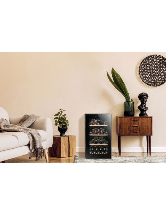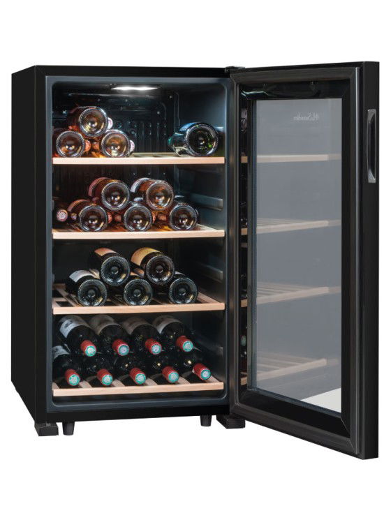 De LS52BLACK wijnklimaatkast van het frans merk Climadiff heeft een opslagcapaciteit voor het opslaan van maximaal 52 flessen* wijn. Deze wijnkast met enkele zone is uitgerust met 4 houten leggers. De temperatuur is instelbaar tussen 5°C – 20°C en het geluidsniveau is zeer stil.