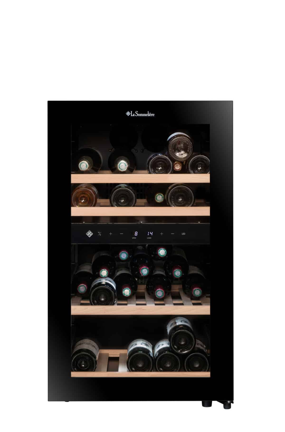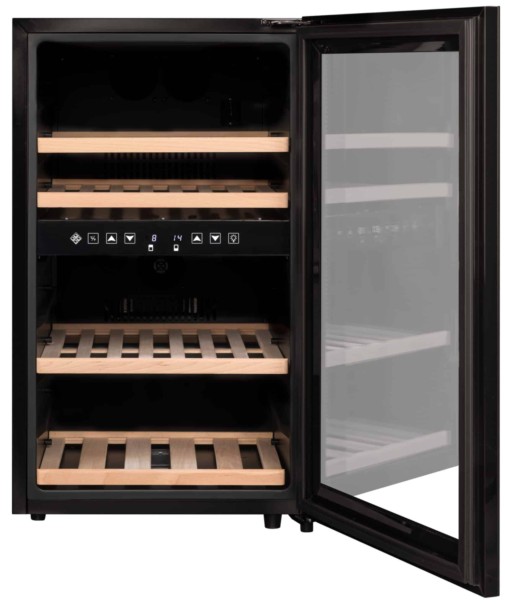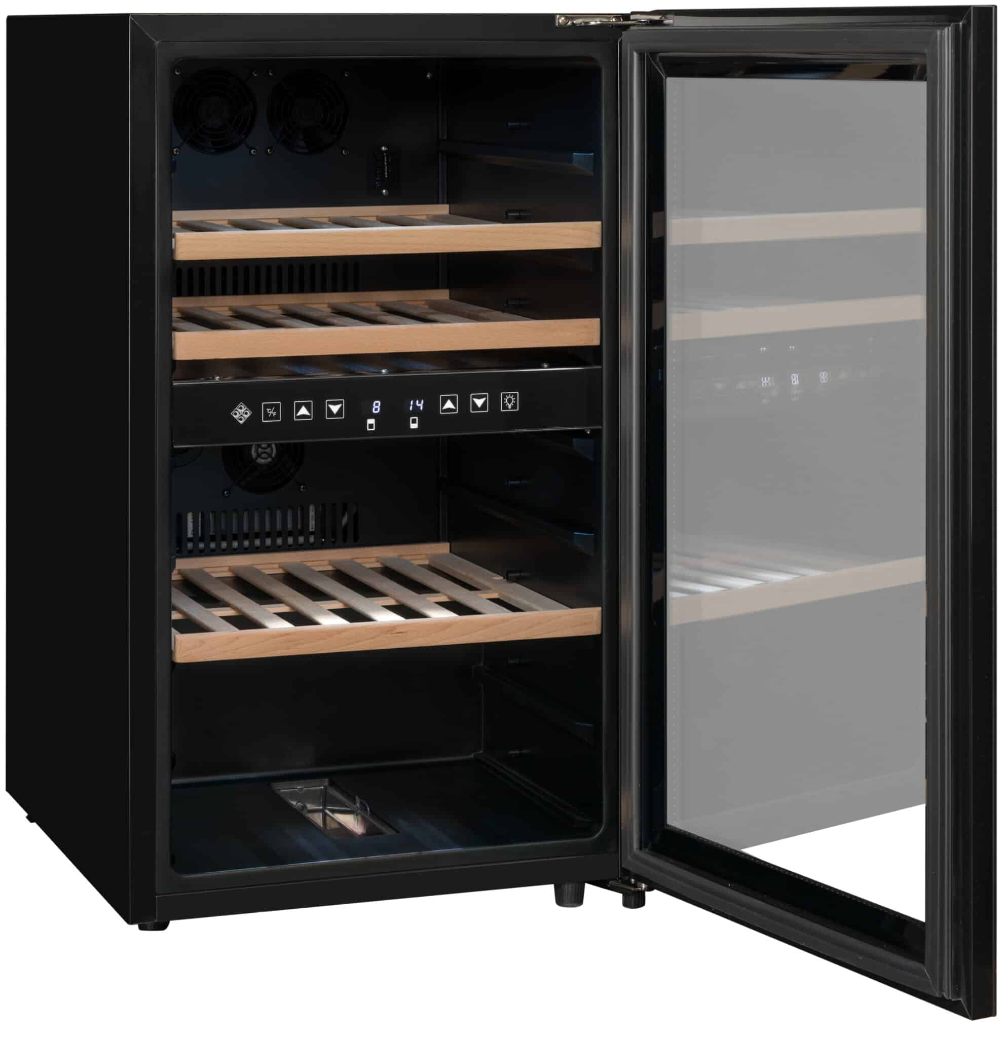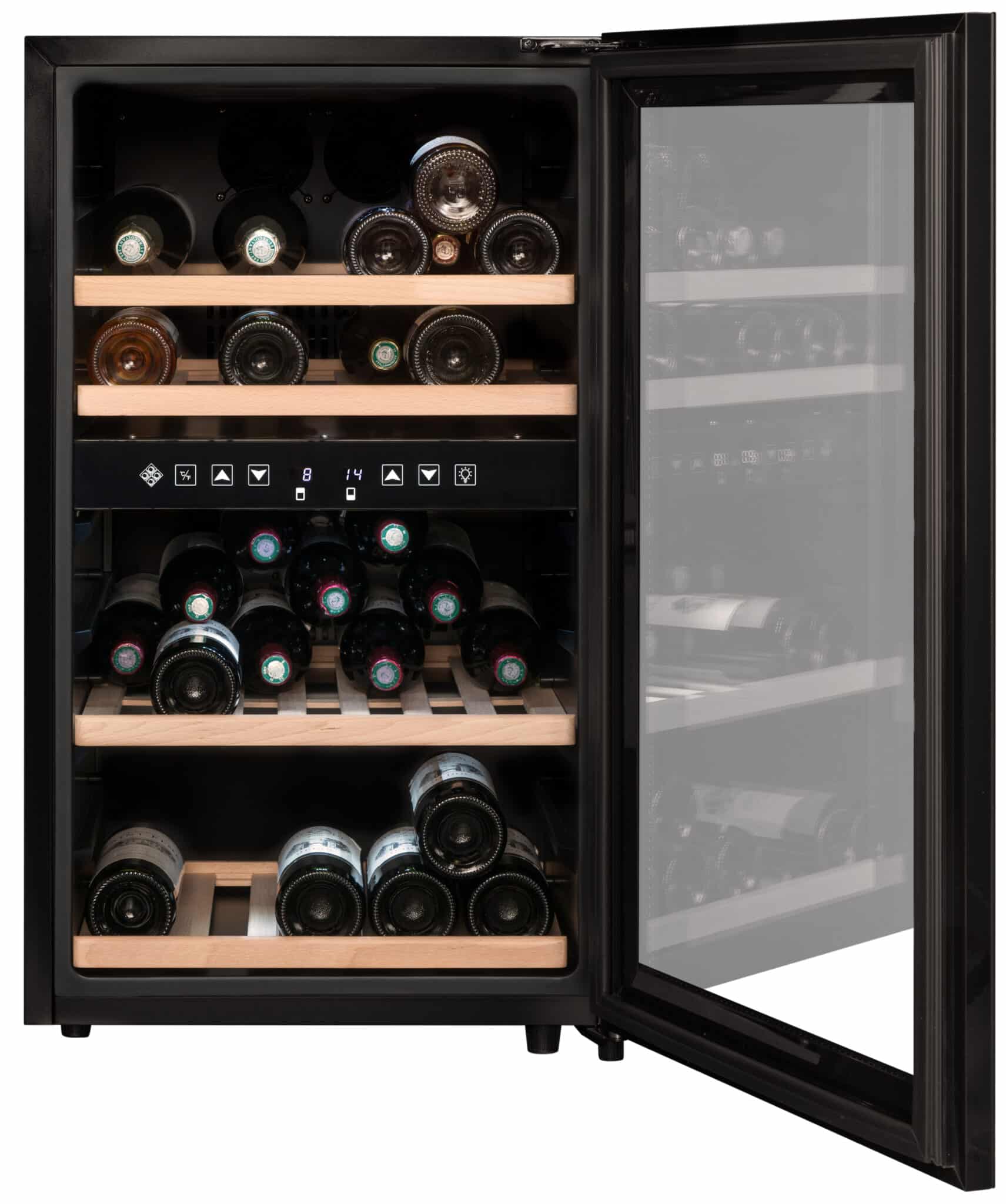 De La Sommelière SLS45DZ is een twee zone wijnkoelkast met een opslagcapaciteit van 45 flessen. Dankzij de 2 aparte compartimenten kunnen de temperaturen onafhankelijk worden ingesteld (5°C-10°C boven en 10°C-20°C onder), ideaal voor het bewaren van rode, witte en roséwijnen op hun optimale temperatuur.